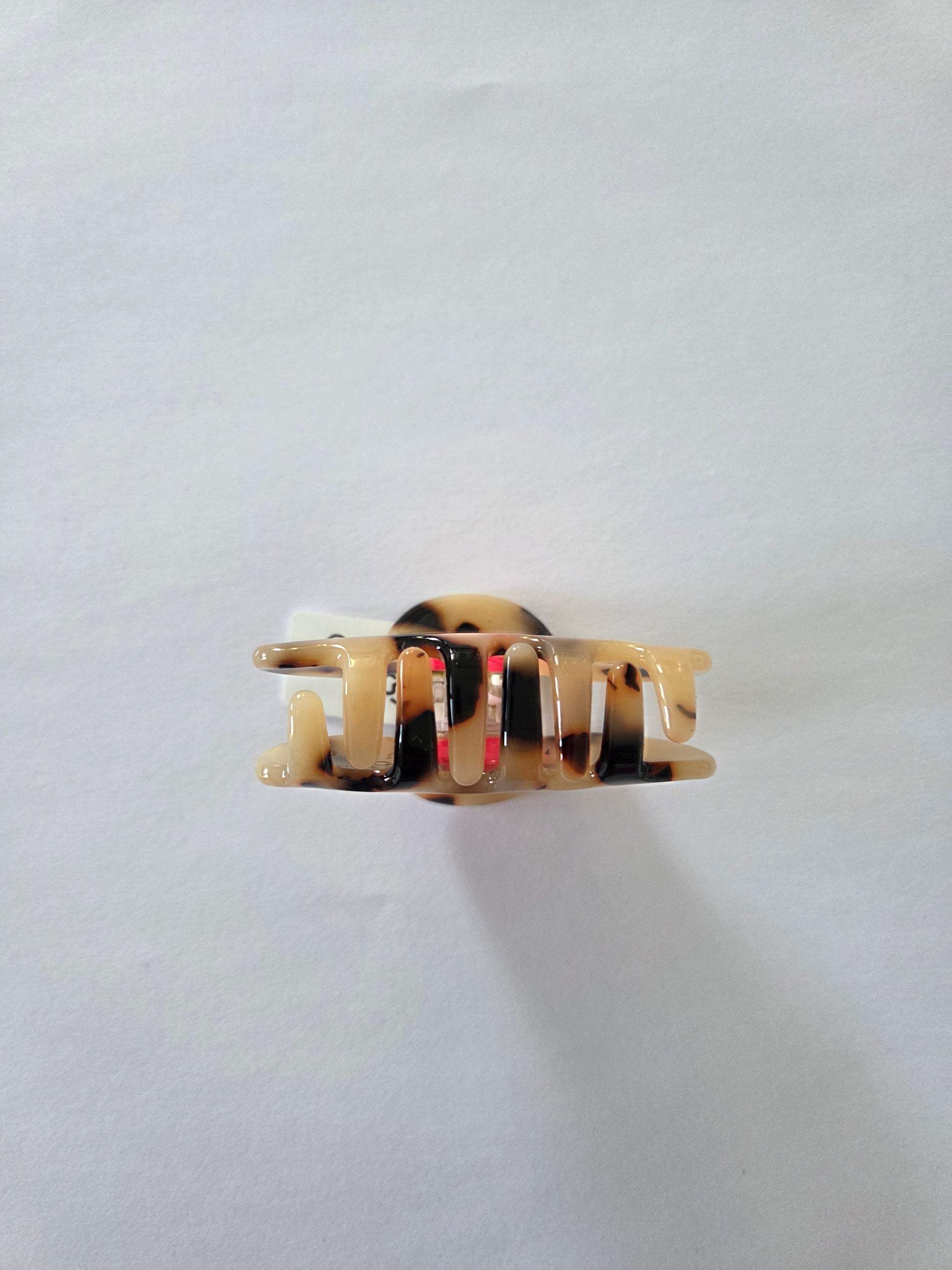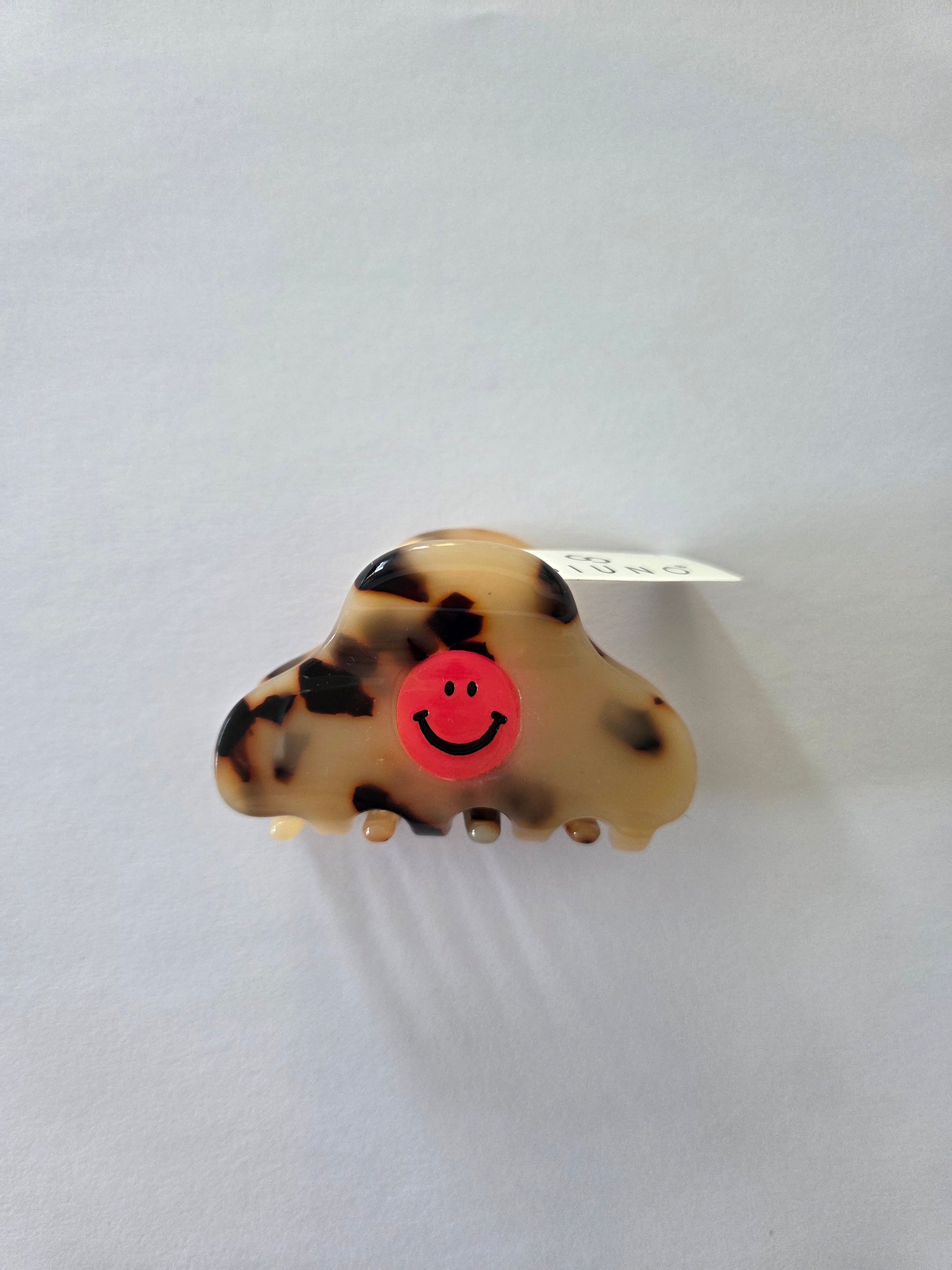 Trendiger Look für tolle Frisuren! Haarklammer klein mit festem halt, aus Acryl in Leoprint mit Pinkem Neon Smiley.