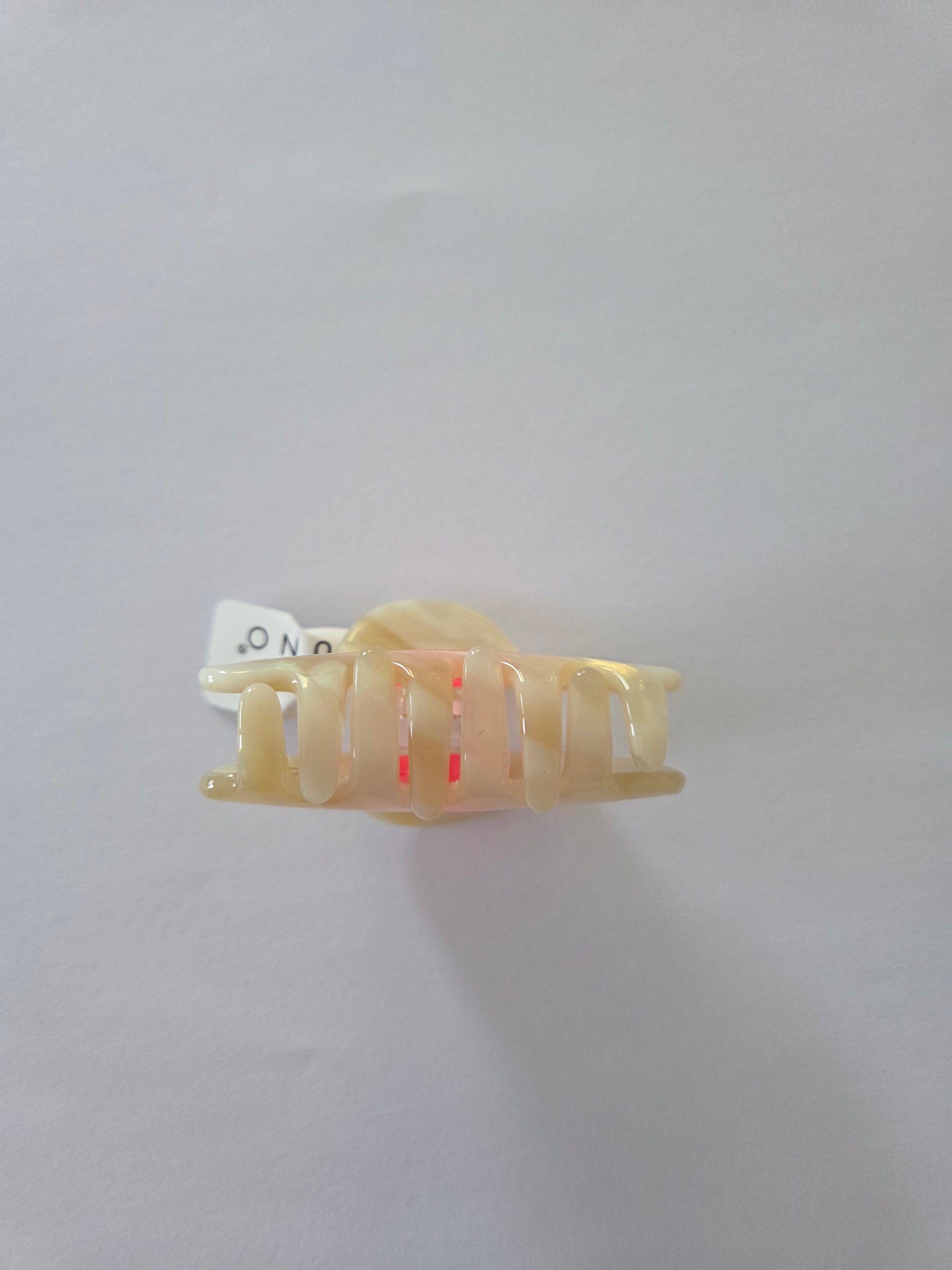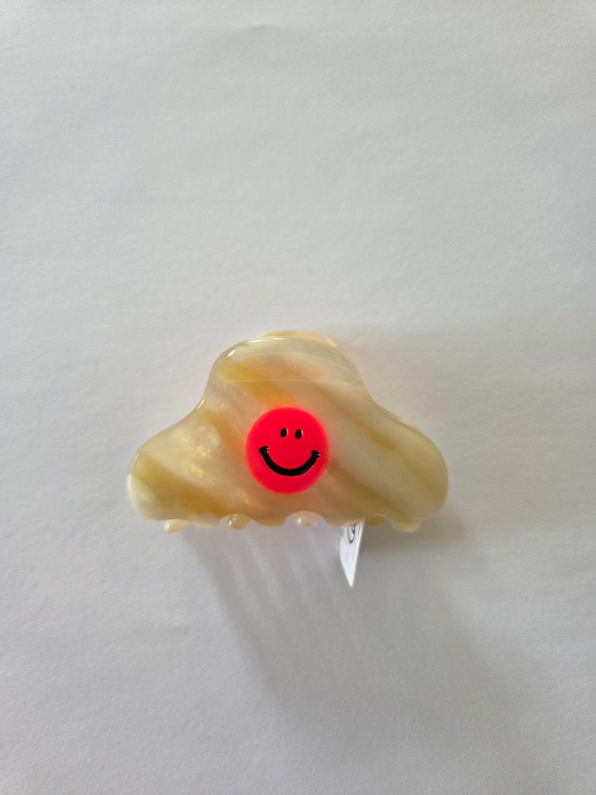 Trendiger Look für tolle Frisuren! Haarklammer klein mit festem halt, aus Acryl in Creme mit Pinkem Neon Smiley.