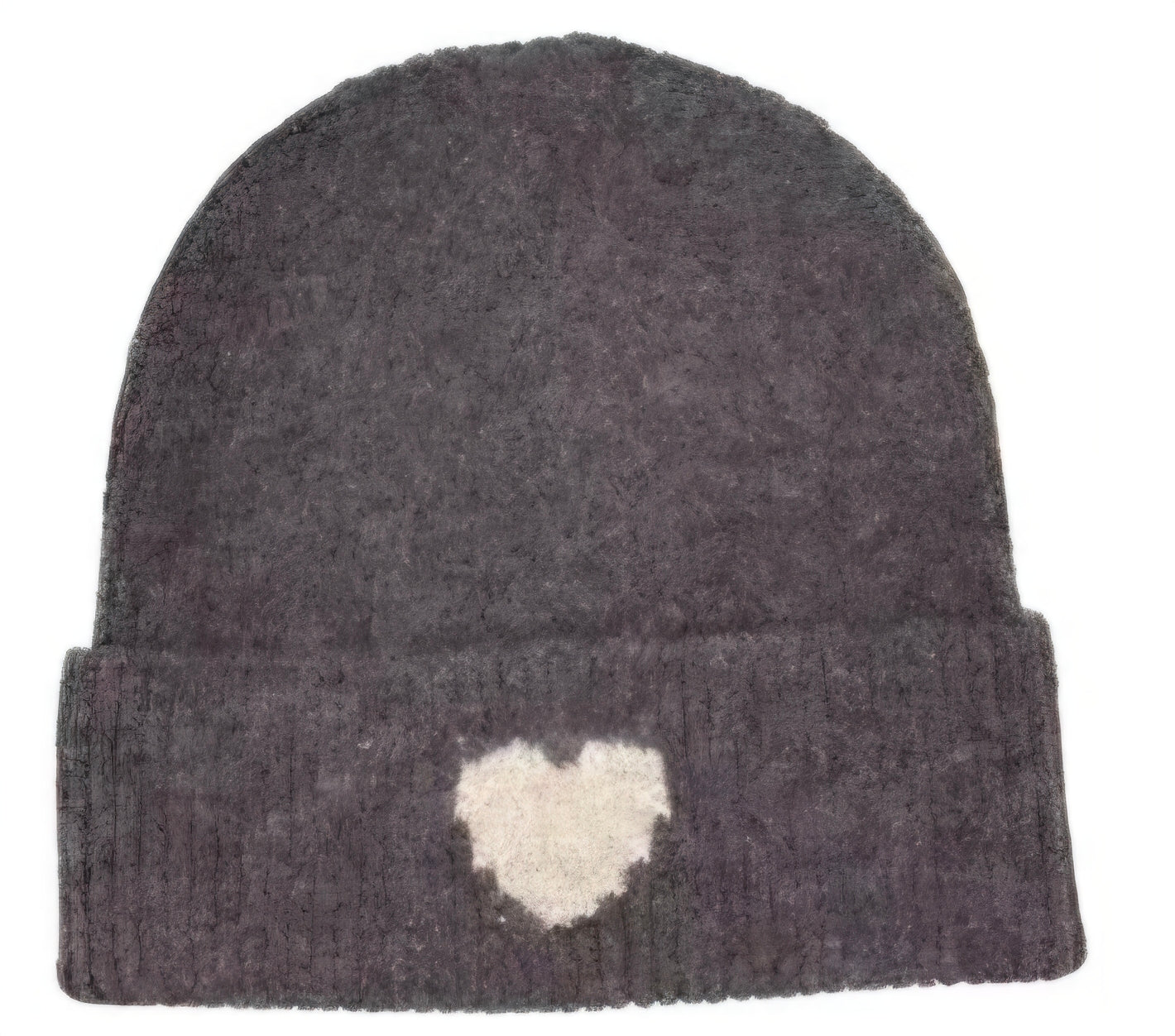 Modische Beanie mit Herz aus einem Materialmix, 80% Viskose und 20% Wolle. Sie wunderbar weich, warm und angenehm zu tragen.
